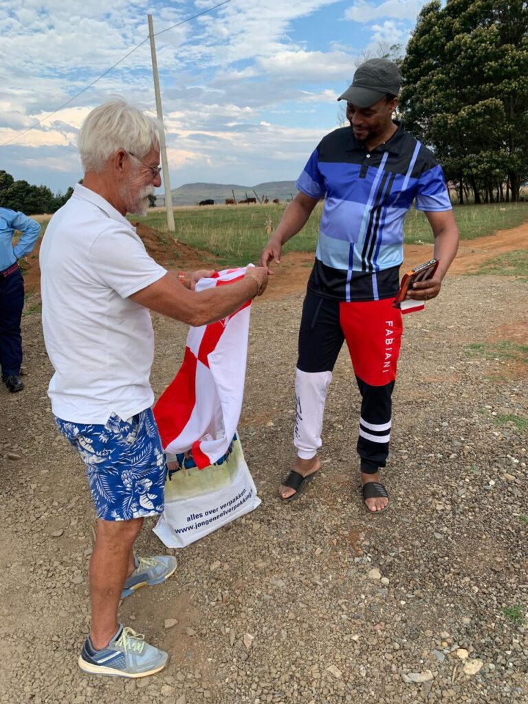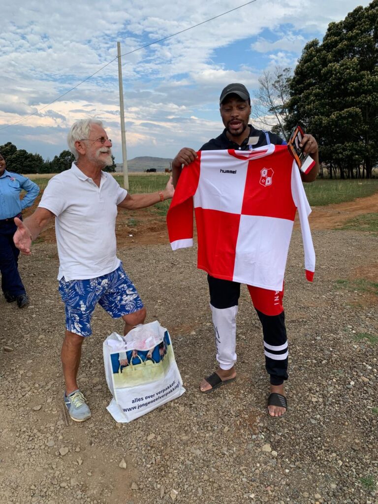 Dankzij shirtjes van CDN uit Driebergen kan er in de Drakensberg weer een nieuw voetbalteam het veld op. Dixy en Minne hebben ze persoonlijk uitgedeeld, en de jongens straalden van oor tot oor.